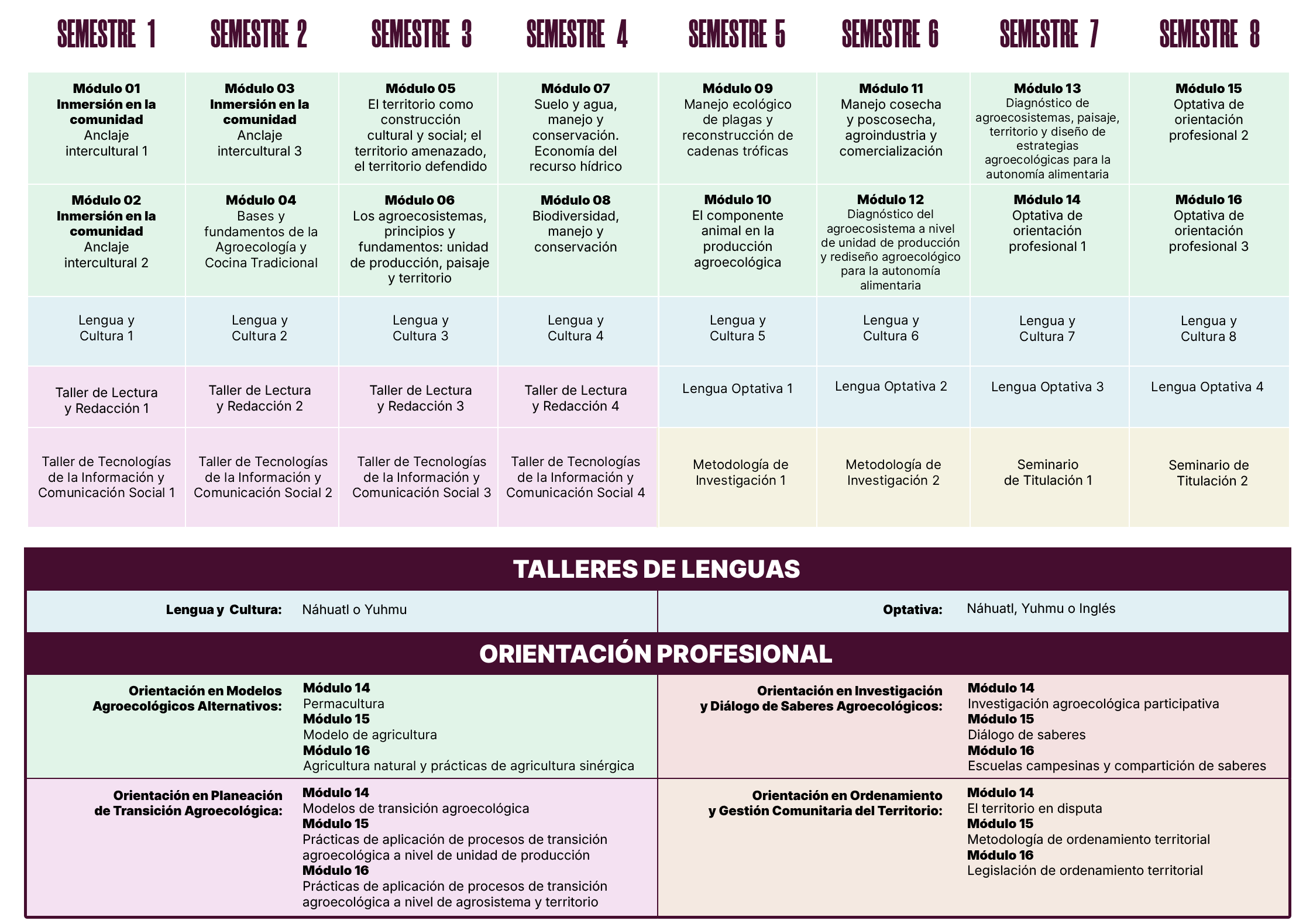 La licenciatura Agroecología y Gestión Comunitaria del Territorio se enfoca en el análisis crítico de los impactos ambientales y sociales del modelo agronómico dominante, valorando los sistemas campesinos por su sostenibilidad y resiliencia. Se promueve la agroecología mediante el diálogo de saberes, replanteando las relaciones y asistencia técnica con los campesinos hacia modelos más sostenibles. Promueve el diseño y ejecución de planes de transición hacia la soberanía alimentaria. Además, promueve el reordenamiento territorial participativo que fortalece la identidad y defensa del territorio. Fomenta la generación de conocimiento agroecológico situado y el intercambio de saberes para mejorar las prácticas de producción y la gestión de proyectos agrícolas con un enfoque de sostenibilidad y agroecología.